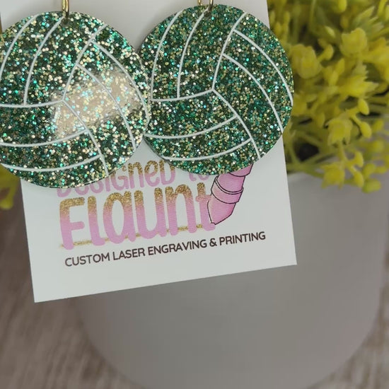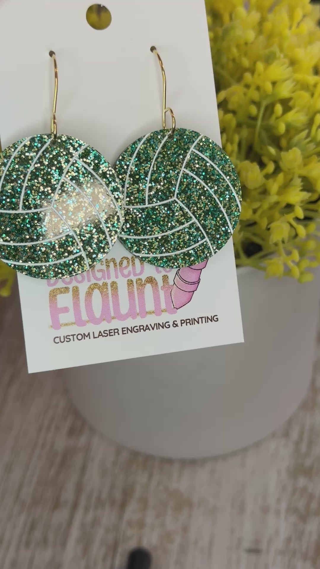 Serve up some sparkle with these glitter volleyball dangle earrings — the perfect accessory for athletes, parents, and fans cheering from the court sidelines!