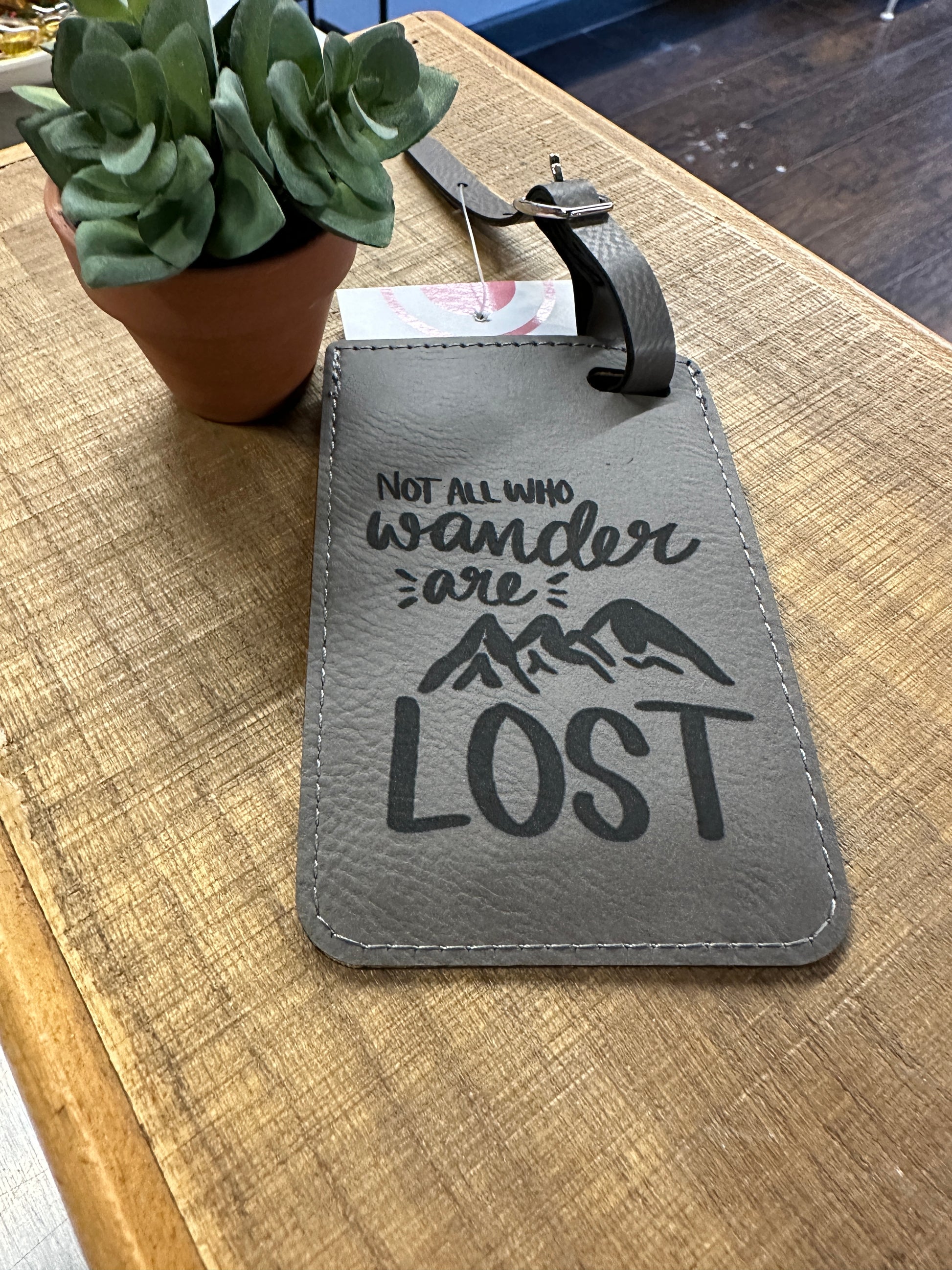 The robust leatherette material ensures that your luggage tag will withstand the rigors of travel, making it a reliable companion on all your adventures. The sleek design and laser-engraved details add a touch of sophistication to your belongings, while the travel-friendly nature of the tag ensures that it is easy to attach and remove as needed. Stay organized and stylish on your journeys with the Not All Who Wander Are Lost Luggage Tag!