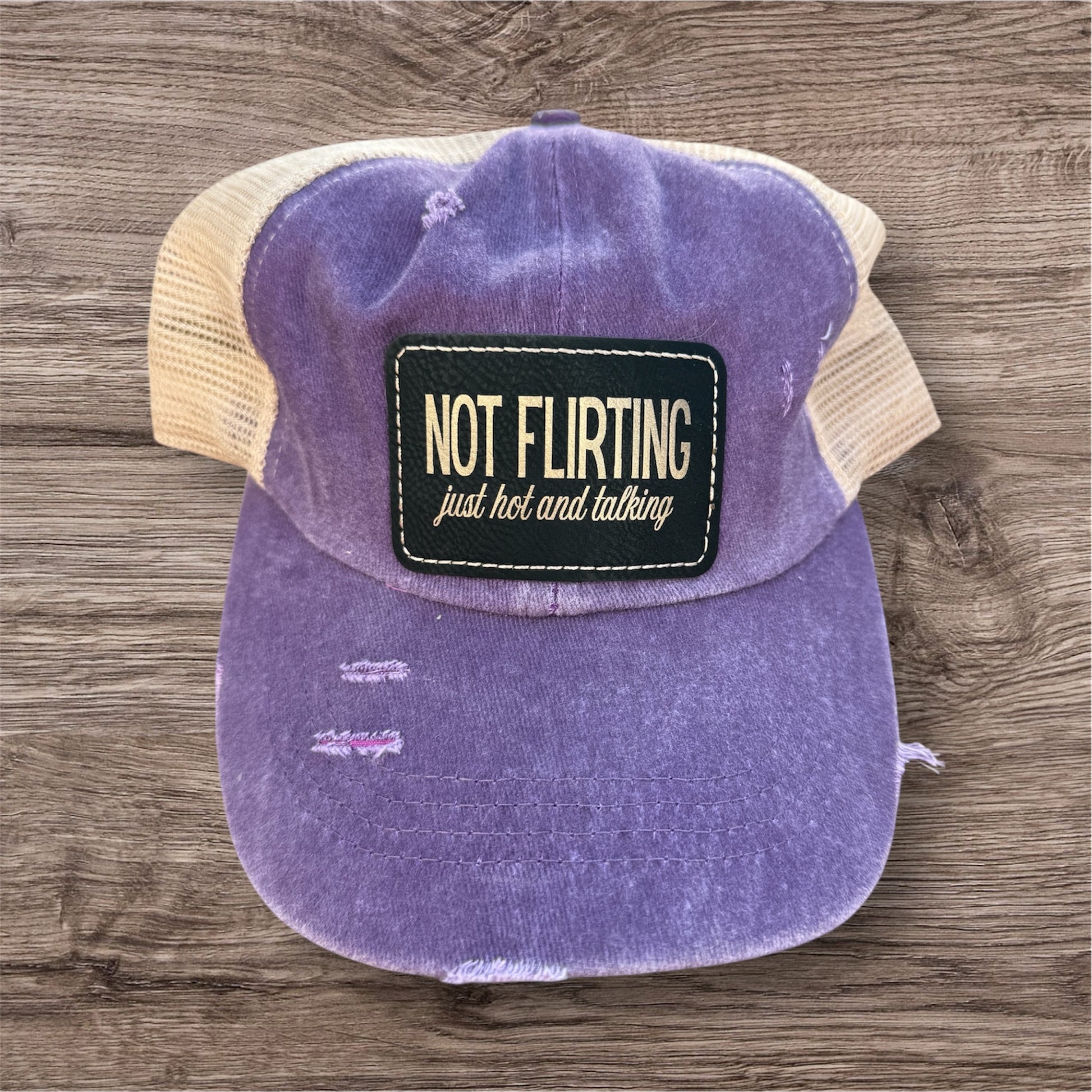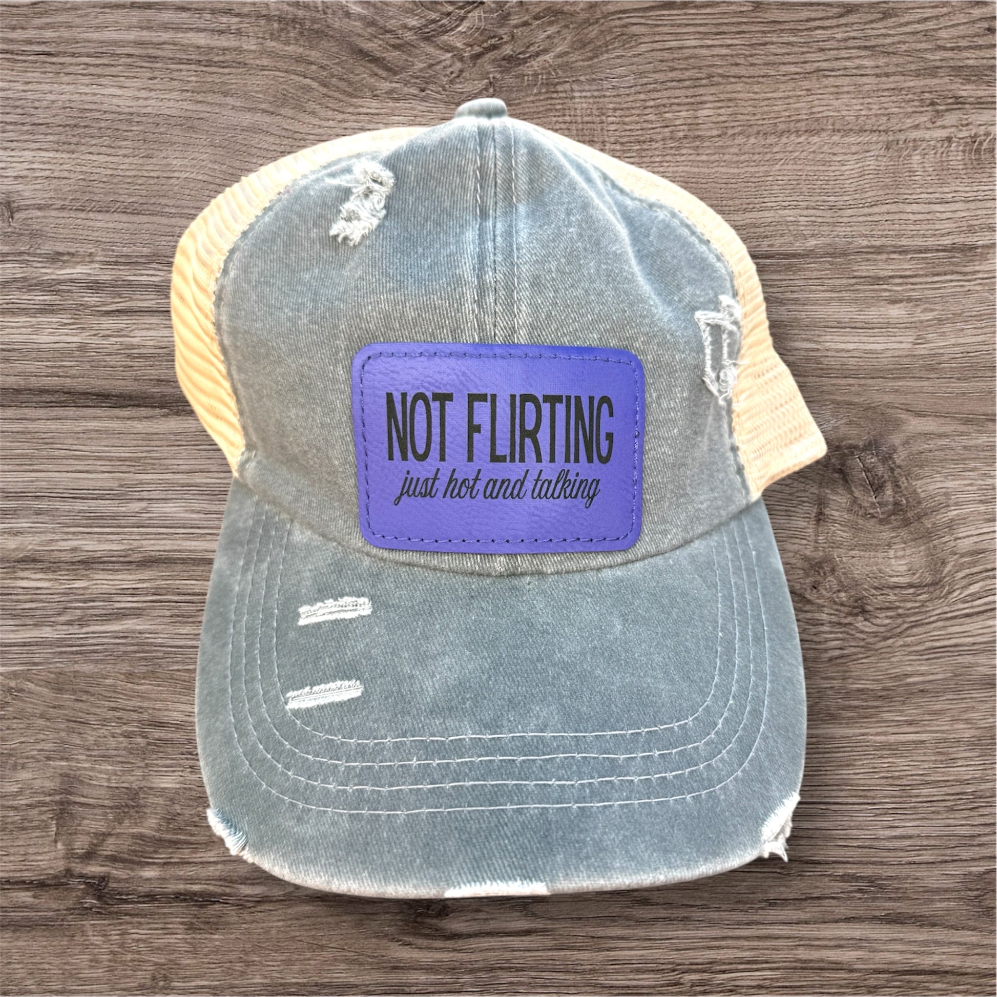 Turn heads and spark smiles with this playful criss cross hat! đâď¸ Featuring an engraved leatherette patch that reads âNot Flirting. Just Hot and Talkingâ, itâs the perfect mix of humor and sass. This isnât about the weatherâitâs an innuendo that says youâre confident, attractive, and owning it.