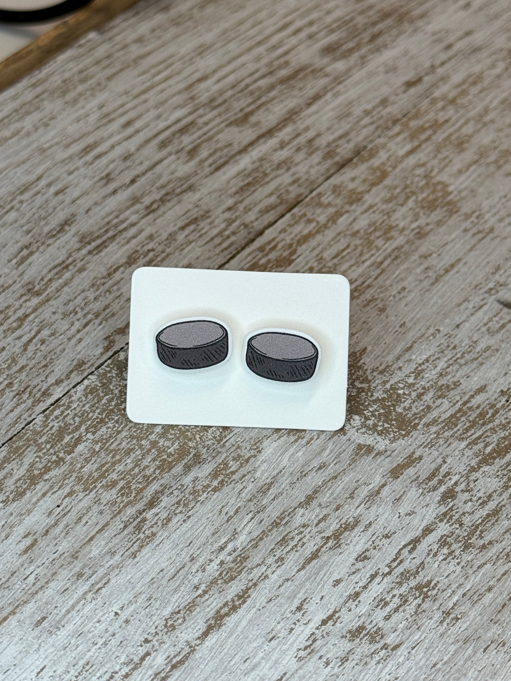 UV Printed Power Play Puck Stud Earrings