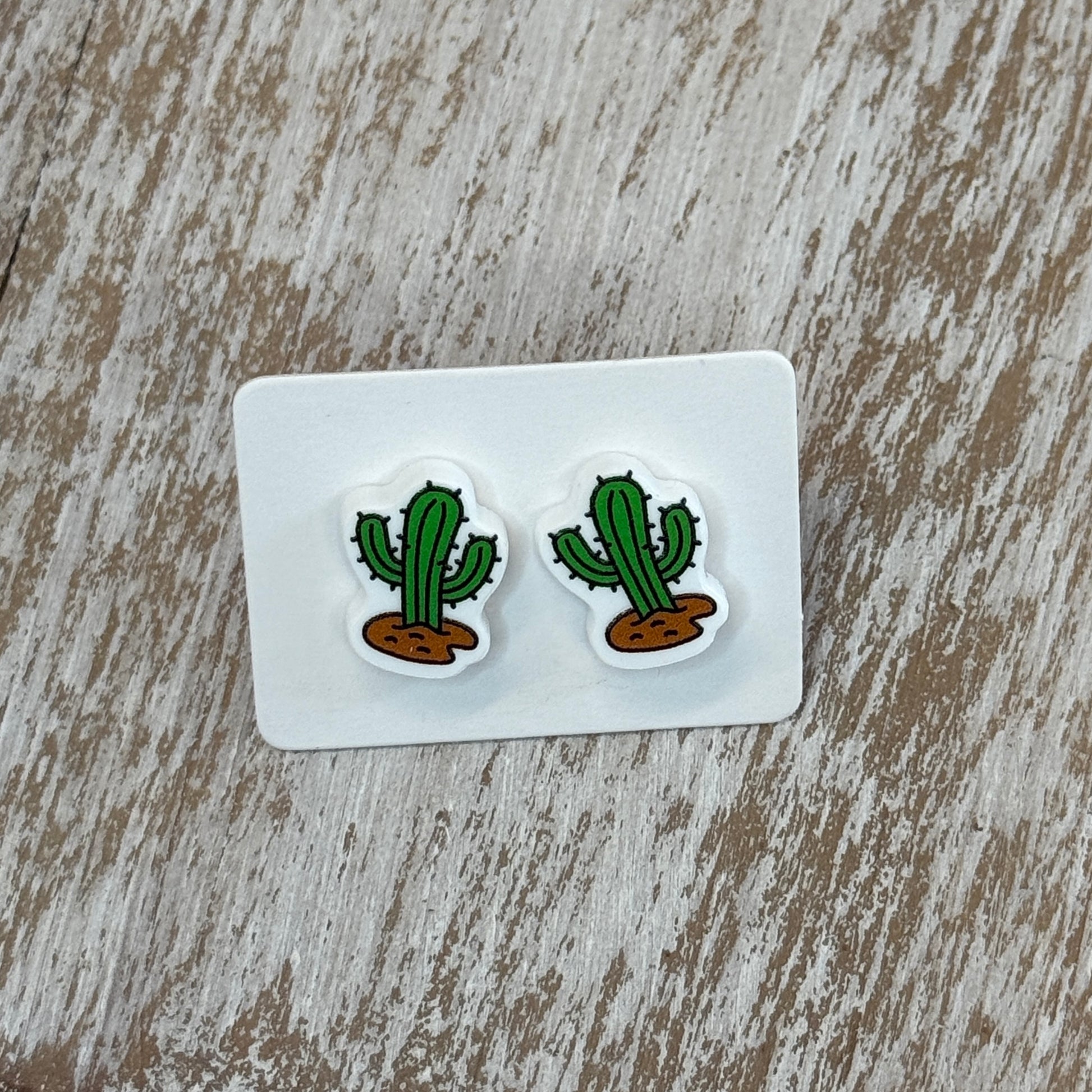 Bring desert charm to your day with these Prickly Pretty Cactus stud earrings! Crafted from durable acrylic, laser cut for clean precision, and UV printed with bright, playful cactus detail, these lightweight studs are perfect for adding a fun pop of personality to any outfit. Finished with hypoallergenic hardware, they’re safe for sensitive ears and comfy for all-day wear.