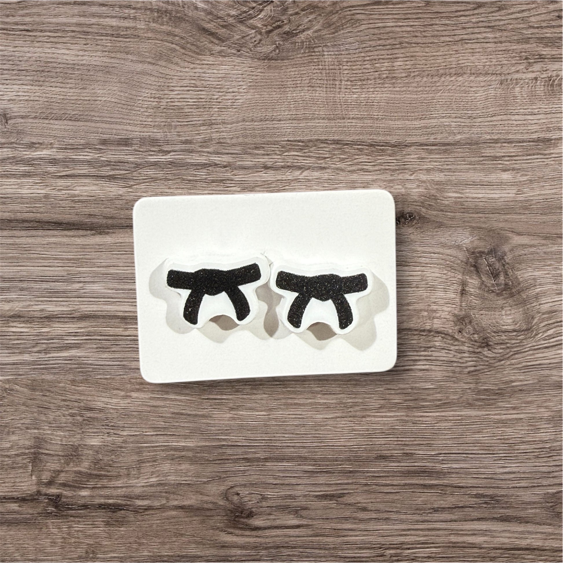 Show off your strength and discipline with these Black Belt stud earrings, inspired by martial arts excellence. Made from durable acrylic, laser cut for clean edges, and UV printed with bold detail, these studs are lightweight and stylish. Finished with hypoallergenic hardware, they’re safe for sensitive ears and comfortable enough for everyday wear.