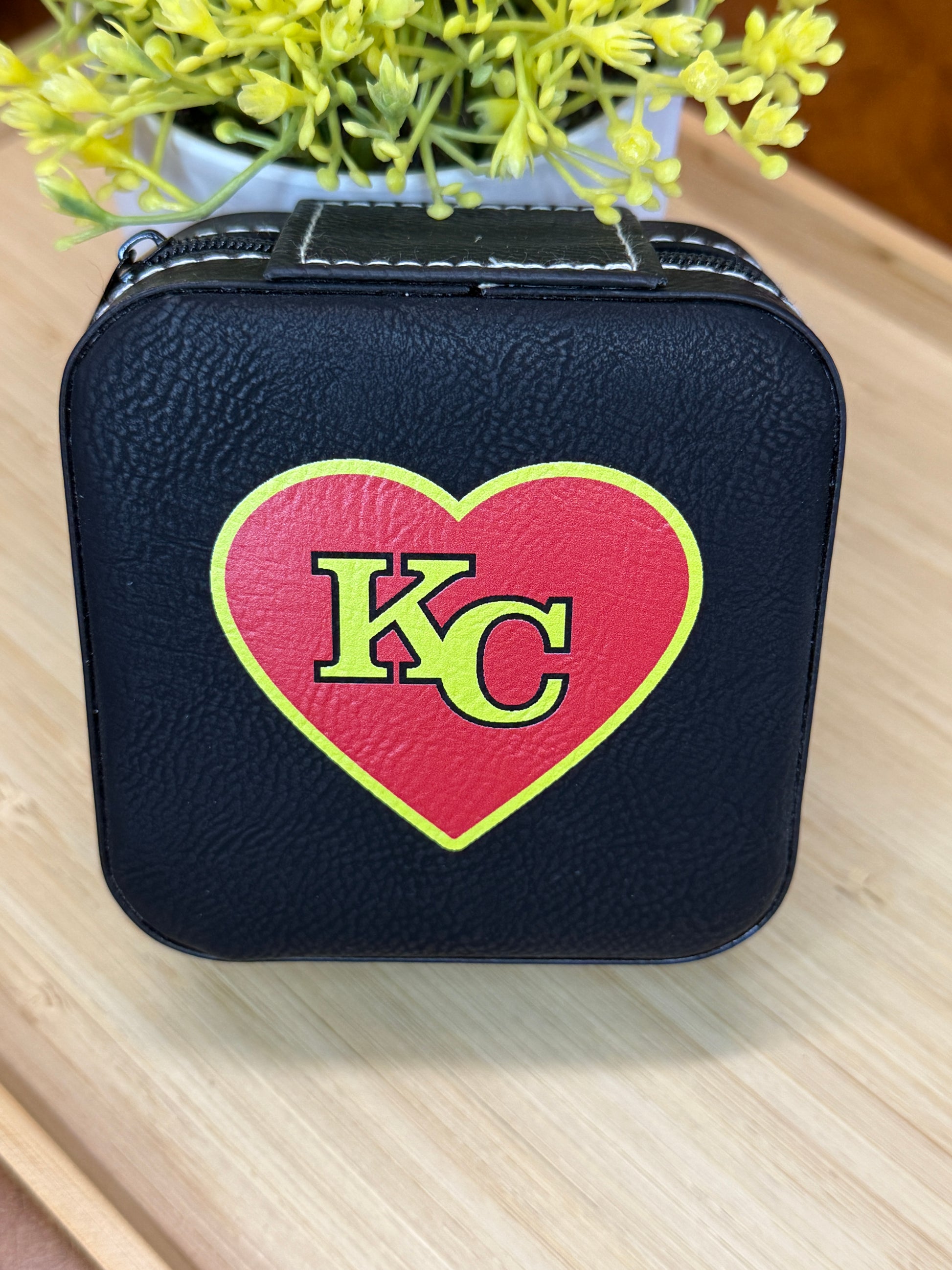 Show your Chiefs pride with this stylish 4x4 leatherette jewelry box featuring a bold red heart with “KC” in the center, expertly UV printed for sharp, vibrant colors that last. Perfect for safely storing your favorite rings, earrings, or keepsakes with a sporty touch.