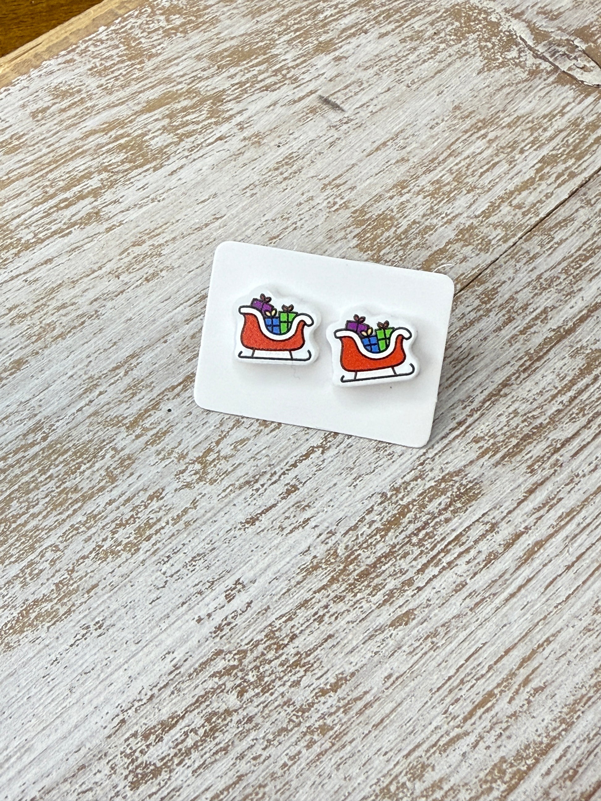UV Printed Sleigh Ride Acrylic Stud Earrings
